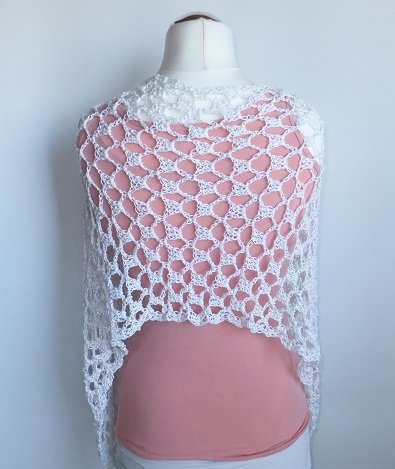 Das gehäkelte Tuch ist sehr vielseitig verwendbar. Es hat ein einfaches Netzmuster, wirkt aber dennoch edel. Aufgrund der 6-er Häkelnadel ist es auch sehr schnell gehäkelt. Verwendet wird ein Baumwollgarn. Sollte es Edel (mit Glanz) sein, wird ein Baumwollmischgarn mit Viskose verwendet.