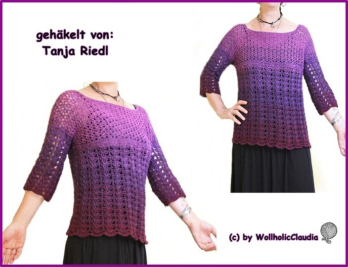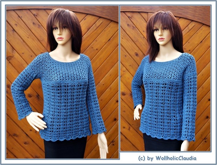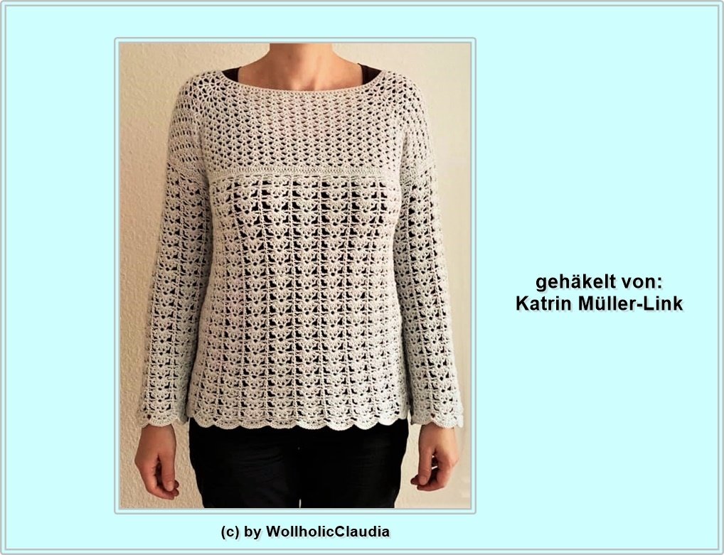 Der Pulli wird von oben nach unten gearbeitet (Rvo) und ist jeder Damengröße machbar, alles ist genau in der Anleitung erklärt.