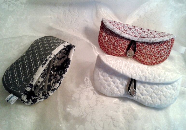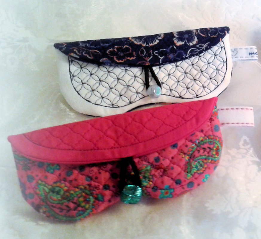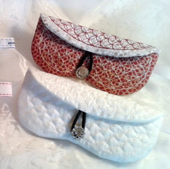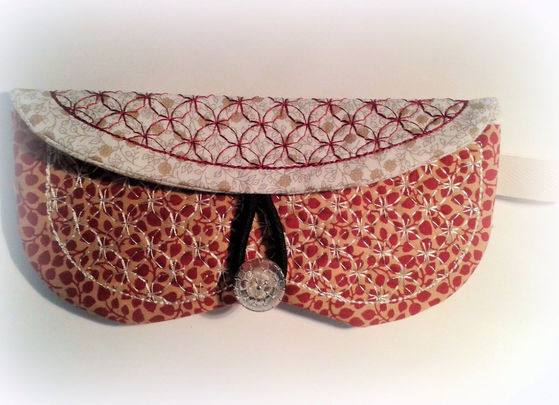 Ein Brillenetui mit zwei verschiedenen Quiltdateien, die sich fast über den gesamten Stoff ziehen, und dem Brillenetui so eine stabile Form geben. Wertet auch einfachen Stoff schön auf. Das Set besteht aus 6 Dateien, inkl. Blankodateien zum individuellen besticken. Komplett in zwei Rahmen gestickt. Mit ganz einfacher Front (ohne Bestickung) auch in einem Rahmen zu sticken. Ohne sichtbare Innennähte.