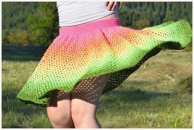 Deshalb habe ich hier aus einem bunten, sommerlichen Bobbel einen ganz simplen Rock gearbeitet, den auch jeder Anfänger mit den ersten Häkelkenntnissen super easy und schnell zaubern kann. Durch den schönen Farbverlauf des Bobbels „Elfentanz“ kommt der Farbwechsel direkt aus dem Knäuel und durch das einfache Muster kannst du dich ganz aufs Häkeln konzentrieren. Durch das gleich mit eingearbeitete Gummiband in 2 verschiedenen Varianten und Größentabelle passt der Rock bei jeder Größe ab 74 Kleinkind bis Größe 58 Damen perfekt. Die Länge des Rockes kannst du ganz nach deinen Wünschen selbst bestimmen und bis zum Ende des Bobbels arbeiten.