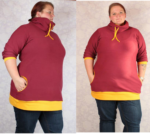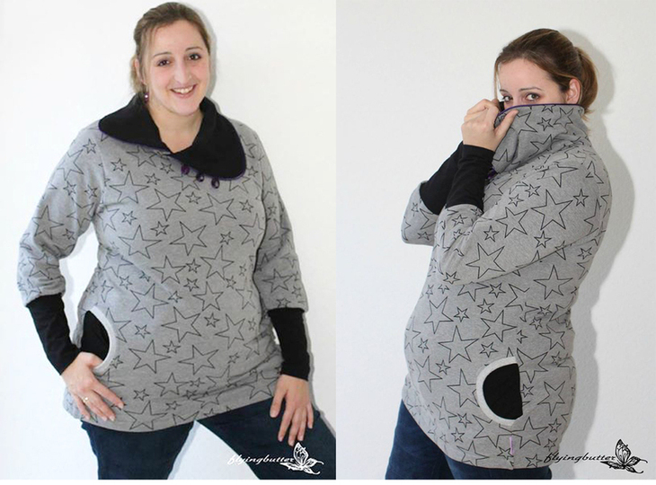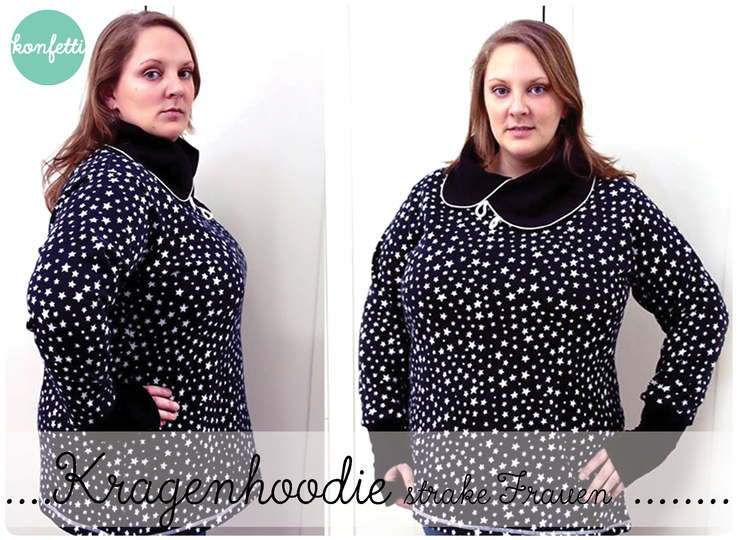 Der Kragenhoodie für die starke Frau in den Gr. 48-56 mit vielen Variationsmöglichkeiten: