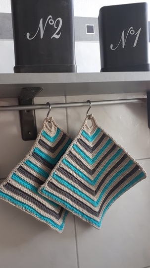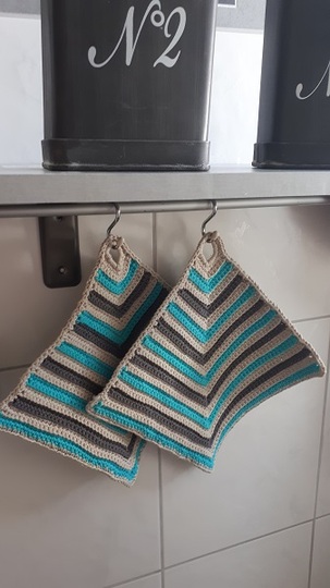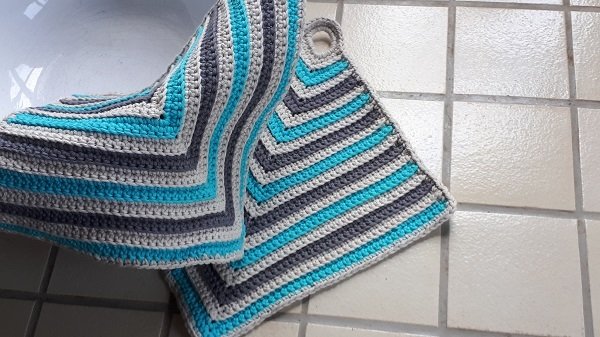 Diese Topflappen sind für Anfänger super gut geeignet, dass darf ich behaupten, da diese Topflappen früher in der Schule als Anfängerprojekt verwendet wurden.