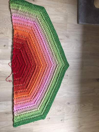 Ihr solltet mit einem Farbverlaufsgarn mit einer Lauflänge von mindestens 750m arbeiten. Nach oben hin sind euch bei der Lauflänge natürlich keine Grenzen gesetzt.