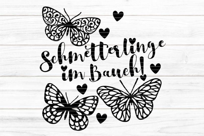 Eine Plotterdatei für Verliebte oder Schwangere , Schwangerschaft, Freude mit Schmetterlingen