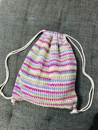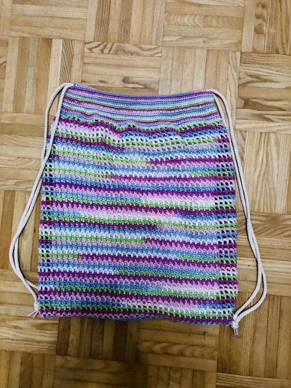 Diese ist eine Anleitung für einen gehäkelten Rucksack / Beutel.
