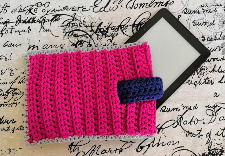 Mit dieser Anleitung kannst Du eine farbenfrohe Schutzhülle für einen E-Reader oder ein kleines Tablet häkeln. Die Hülle ist so gearbeitet, dass das Gerät rundum weich geschützt ist und Du es an dem Riemen rausziehen kannst. Ob für Dich selbst, oder als Geschenk für jemand anderen, diese bunte Hülle zieht sicher so manche Blicke auf sich!
