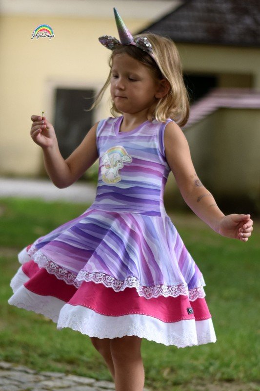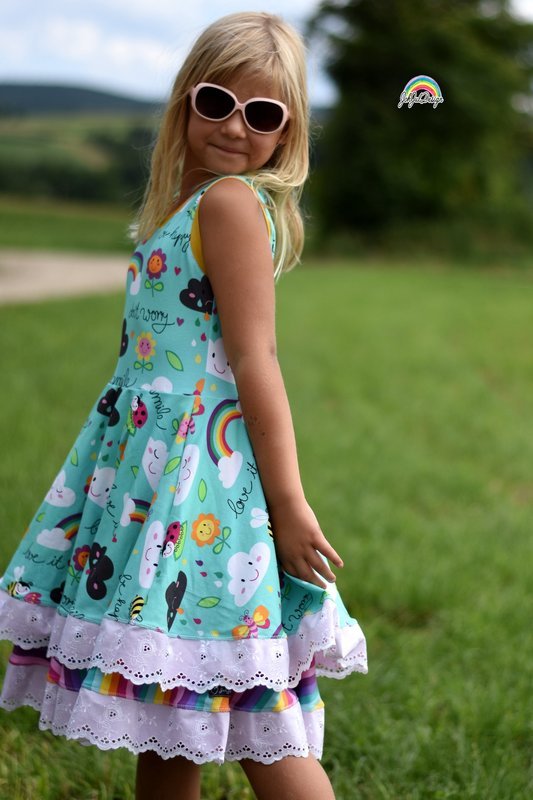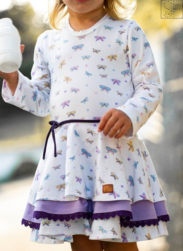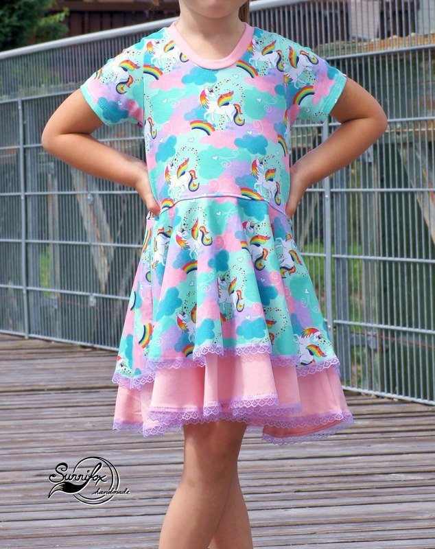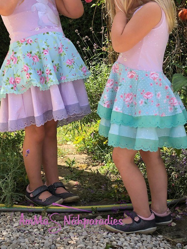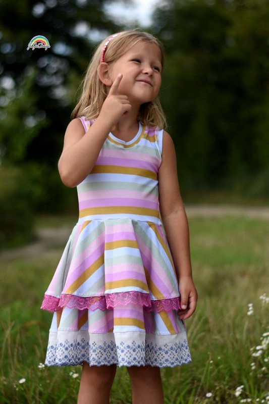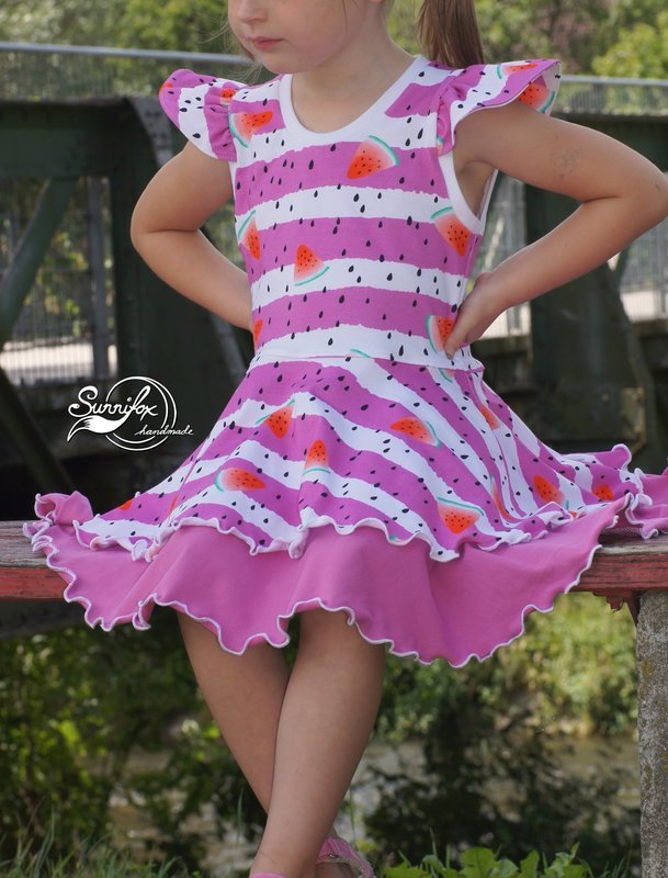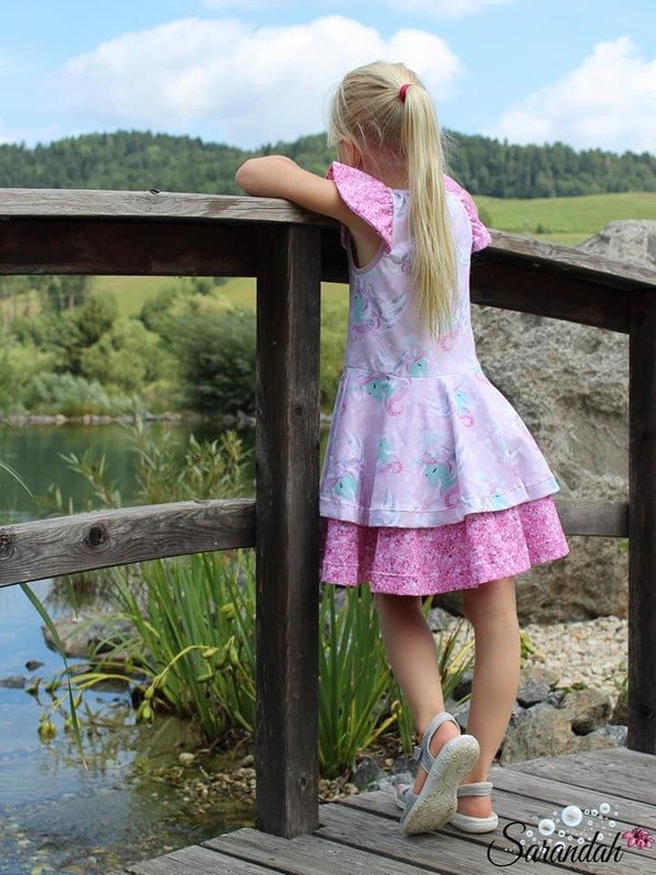 Ein Traum für alle kleinen und großen Mädchen: Drehkleider. Mit Marlene hast du jetzt genau DEN Drehkleid-Schnitt, den du unzählig variieren kannst: mit oder ohne Ärmel, mit langen oder kurzen Ärmeln, lange oder kurze Puffärmel, Flügelärmel oder Kappen-Ärmel – du kannst dir dein Traumkleid selbst zusammenstellen. Dazu hast du 3 Lagen für den Rockteil – diese kannst du alle 3 auf einmal nutzen und hast so einen Stufenrockteil – oder aber du nähst das Kleid einlagig. Nutzt du ausschließlich die kleinste Lage, so hast du direkt eine Tunika.
