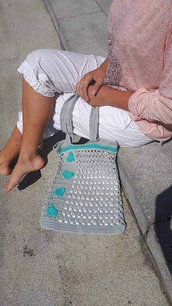 Mit diesem schönen und praktischem Einkaufsnetz kannst du nicht nur deine täglichen Einkäufe ohne Plastiktüten bewältigen, durch die süße Applikation sieht es auch noch äußerst schick aus!