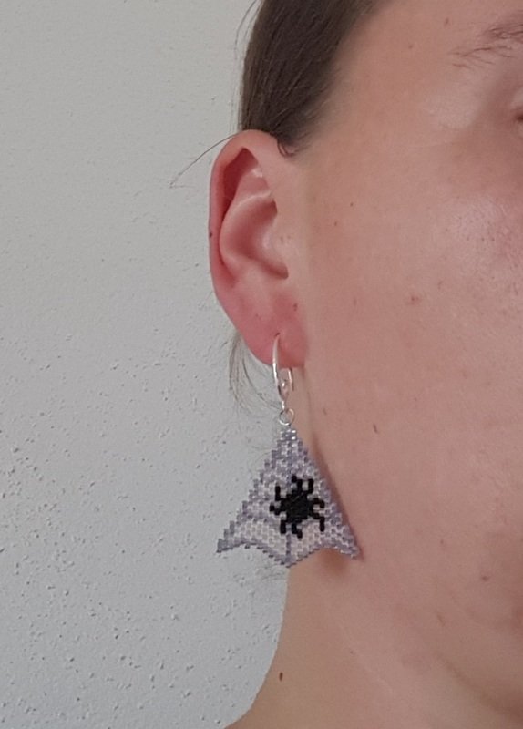 Auf PDF die Vorlage für die Ohrringe im Spinnennetzdesign mit Angabe der Perlenmengen und eine PDF Datei mit Farbcodes und einfachem Zählmuster