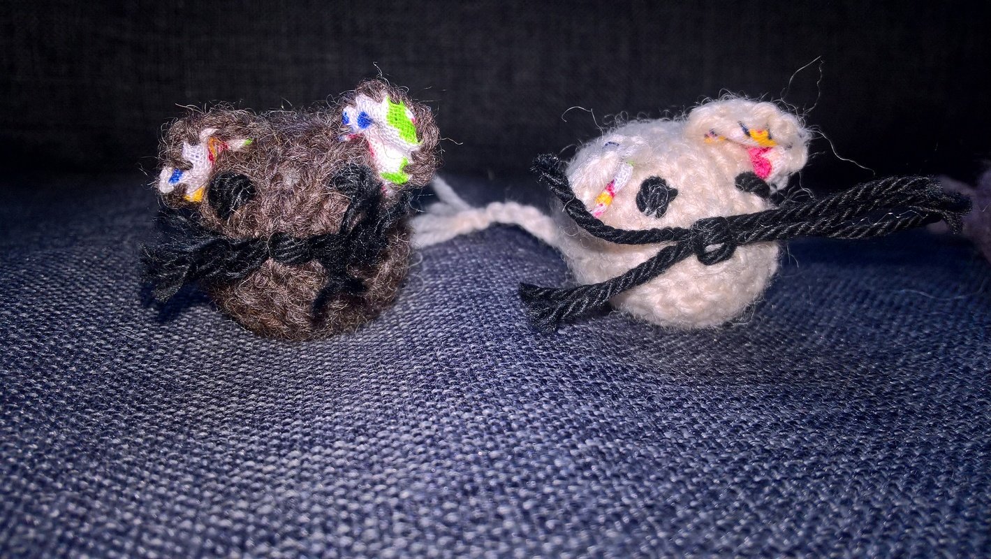 Die Größe des fertigen Mäuschens ist natürlich abhängig von der verwendeten Wolle. Ich habe Wolle mit einer Lauflänge von ca. 100 m auf 50 g gearbeitet. Meine Mäuschen sind damit ca. 4-5 cm groß geworden.