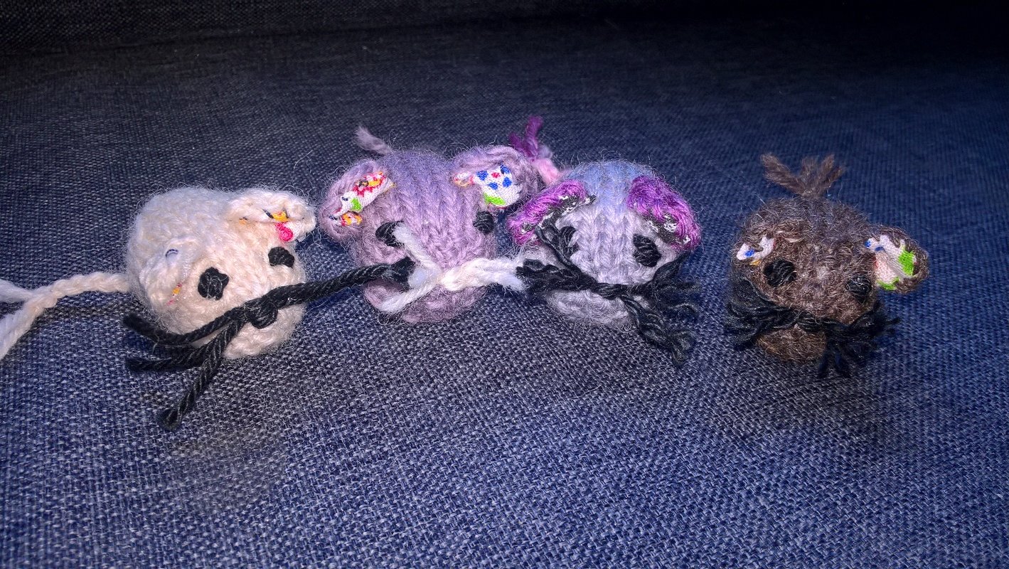 Eine kleine gestrickte Maus als Mitbringsel, Taschenbaumler oder Schlüsselanhänger kommt immer gut an und ergänzt außerdem jeden Kinderbauernhof aus Holz- oder Plastiktieren.