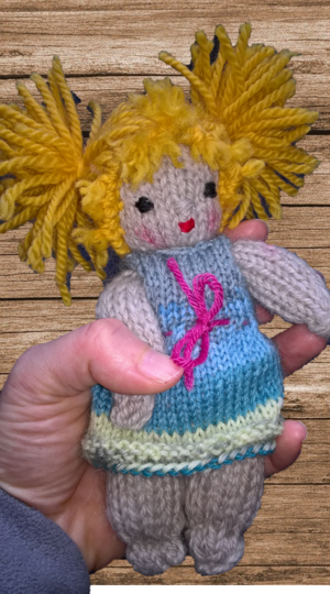 Puppe Diana lässt jedes Kinderherz höher schlagen. Sie ist kuschelweich, handlich und kann dennoch an- und ausgezogen werden. Als geübte/r Stricker/in fertigst du sie in kurzer Zeit und hast eine schöne Überraschung für deine eigenen Kinder oder als kleine Geschenke oder Mitbringsel für andere Kinder. Auch als weniger geübte/r Stricker/in brauchst Du nur wenige Stunden, um sie herzustellen.