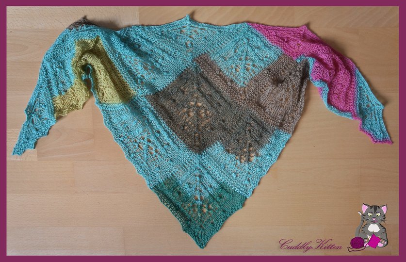 (Selbstverständlich kann das Tuch auch mit Garn einer anderen Lauflänge / Hersteller gestrickt werden.)