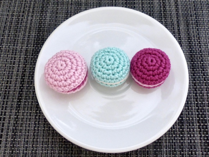 Die fertigen Macarons werden je nach verwendeter Wolle ca. 3,5 cm groß im Durchmesser. Die Anleitung lässt sich aber leicht anpassen.