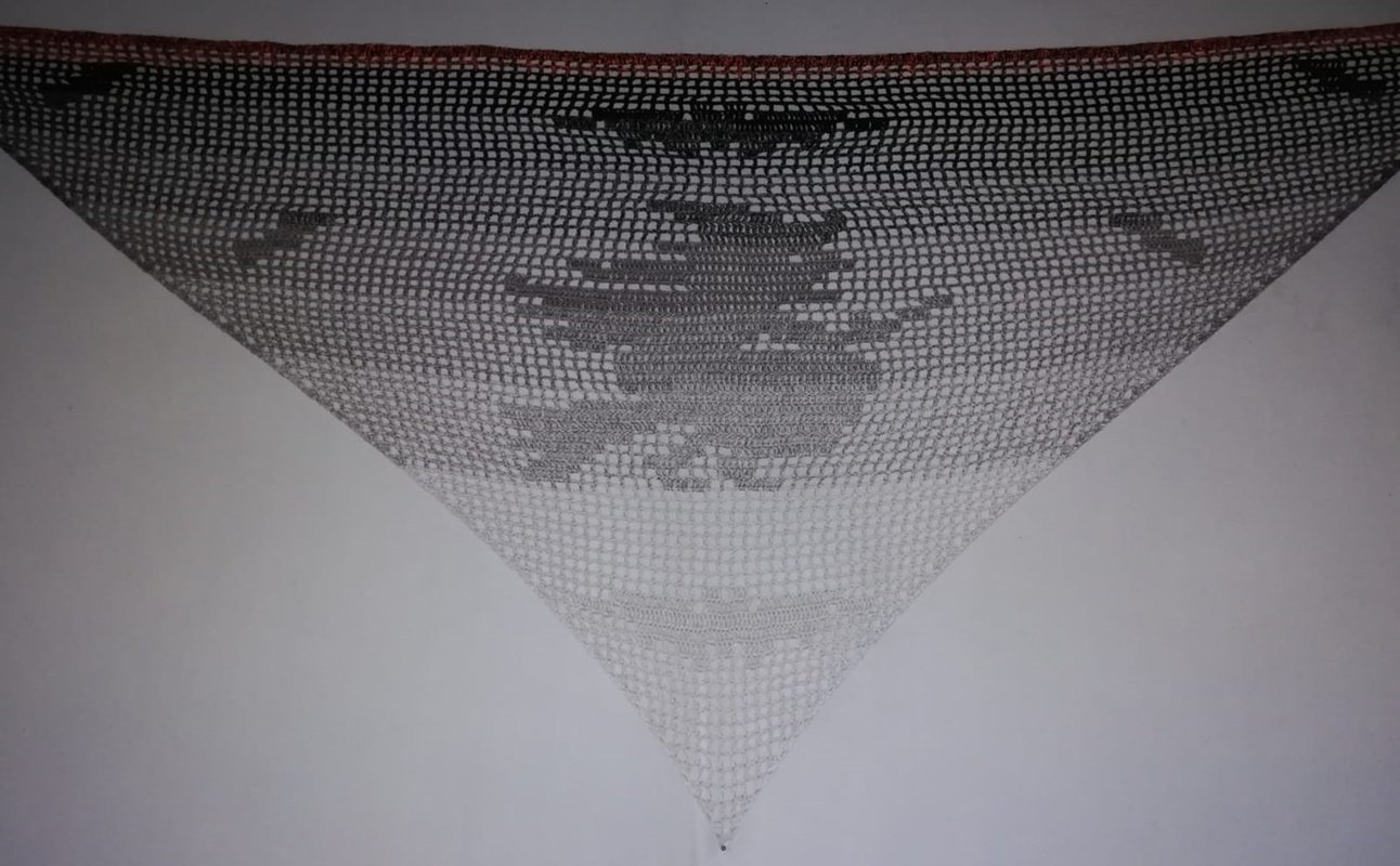 Die Anleitung ist auf 4 Seiten in teilweise Schrift (Erklärung Filethäkeln), der Anfang des Tuches in Pc-Häkelschrift und Zählraster geschrieben.