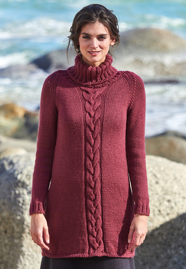 Lane Mondial "Biolana" (100% Schurwolle, LL ca 100 m/50 g): ca 550 (600-650-700) g Bordeaux Fb 171; addi-Stricknd 4,5 und 5 mm; eine 40 cm lange addi-Rundstricknd 4,5 mm.