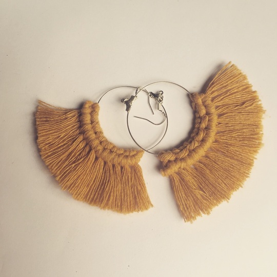 Ich bin ein Makrameekünstler aus Finnland und verkaufe Makrameeohrringe, Wandbehänge und Pflanzenhänger.