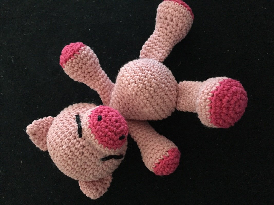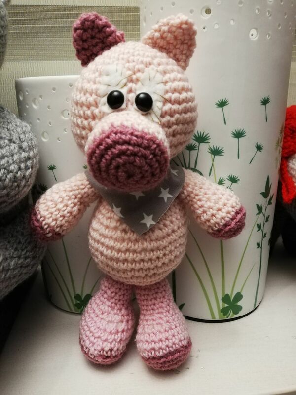 Häkelanleitung fürr ein rosa Schweinchen, Schritt für Schritt Anleitung, reich bebildert, für Anfänger geeignet.