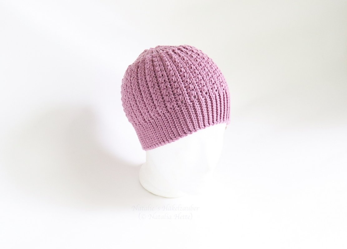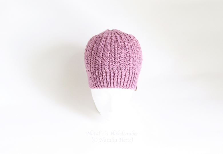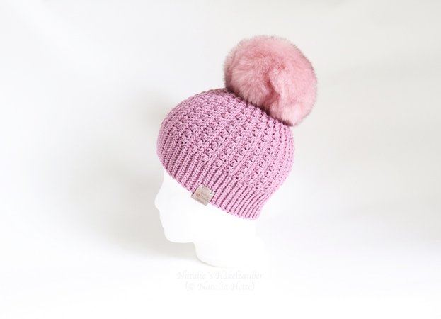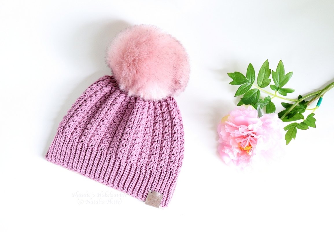 Eine warme Mütze mit einem senkrechten Reliefmuster für die ganze Familie (im Stricklook)! Diese Mütze ist leicht nachzuhäkeln. Sie ist nach ca. 4-5 Stunden (abhängig von der Größe) fertig und mit einer großen Bommel ein echter Hingucker!