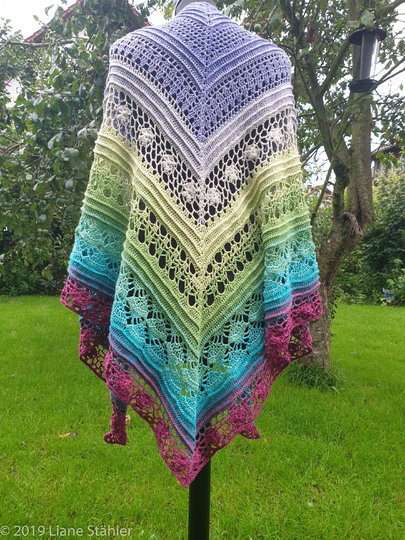 Das Dreieckstuch kann mit Farbverlaufsgarn sowie mit einfarbigen Garnen nachgearbeitet werden.