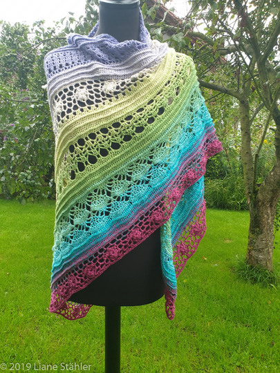 Ich habe die Anleitung sehr genau ausgearbeitet, es ist Reihe für Reihe und Masche für Masche alles beschrieben. Wer lieber nach Schemazeichnungen arbeitet, findet auch sie bei der Anleitung. Schwierigere Details habe ich mit Hilfe von vielen Fotos genau erklärt, damit jeder in der Lage ist, dieses Tuch nach zu arbeiten.