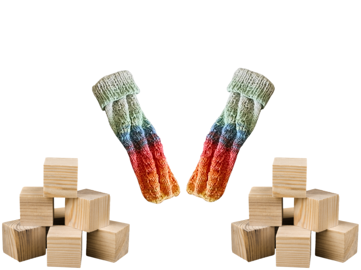 Entdecke jetzt die Welt des Strickens und bestelle die Strickanleitung für die Spiralsocke Kajou. Dein Baby wird es lieben!