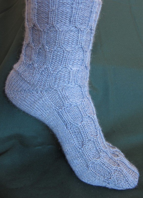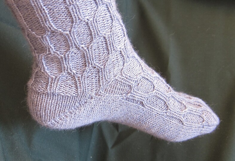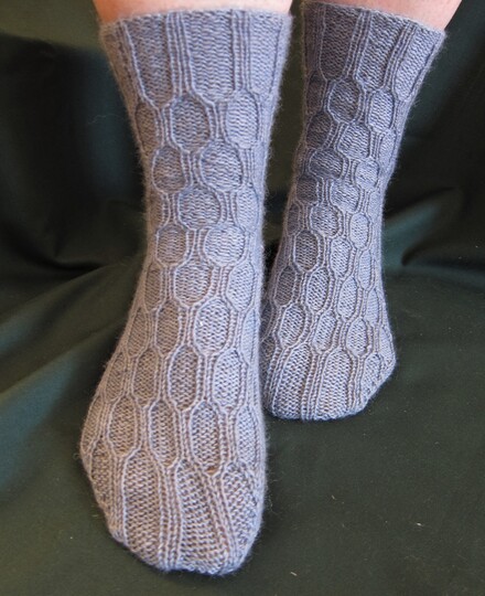 Die Socken sind mit Bumerangferse gestrickt, eine detaillierte Anleitung dazu ist enthalten. Die Ferse kann gegen andere Fersenalternativen ausgetauscht werden, diese sind jedoch nicht in der Anleitung enthalten.