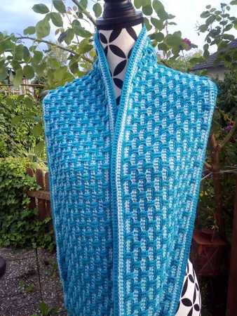 Materialbedarf: ca. 300 - 400 g Wolle ca 125 m LL/50 g oder ca 600 - 900 m/LL 4 fädigen Modalbobbel in mindestens 2 verschiedenen Farben; die benötigte Menge richtet sich danach, wie lang und breit du deinen Loop häkeln möchtest;