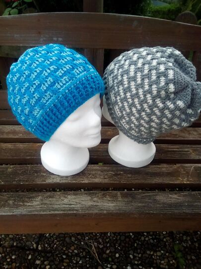 in mindestens 2 verschiedenen Farben, es können auch mehrere verwendete werden und ist deshalb gut zum Verwerten von Woll- oder Bobbelresten.