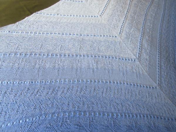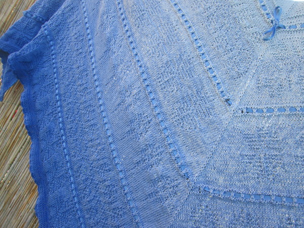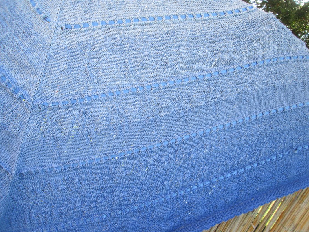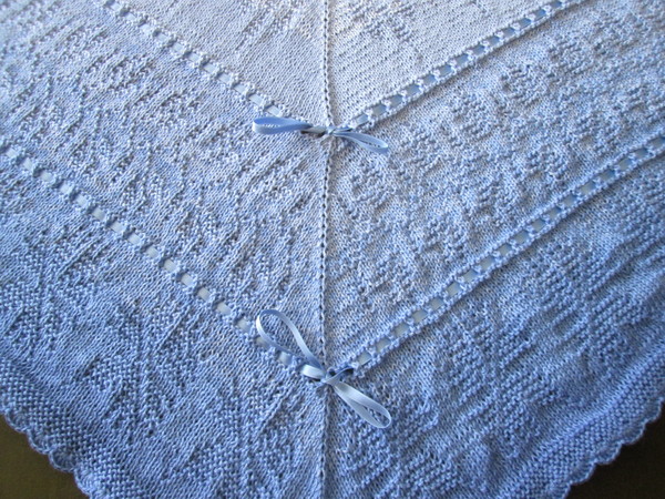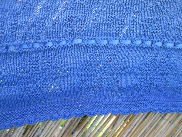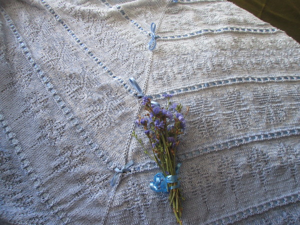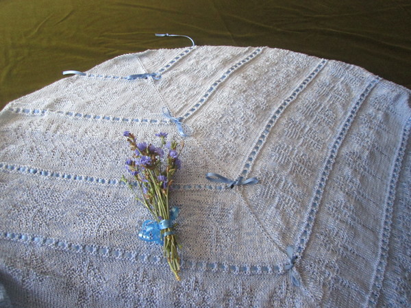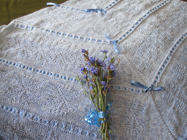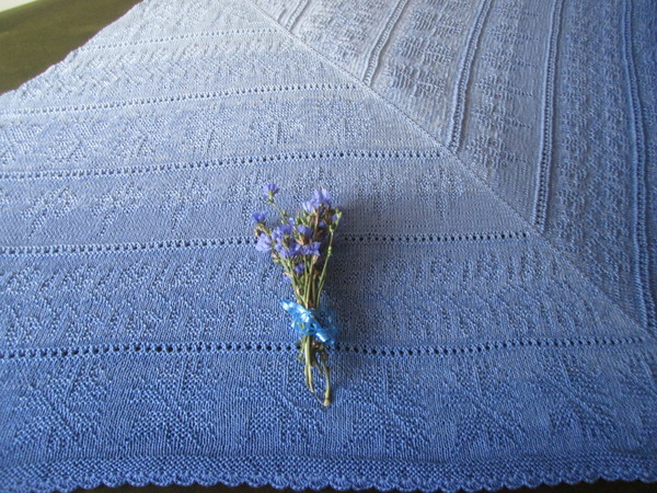 Romantisches edles Tuch mit Kornblumen Motiv , und Loch Muster,mit Satinband verziert.
