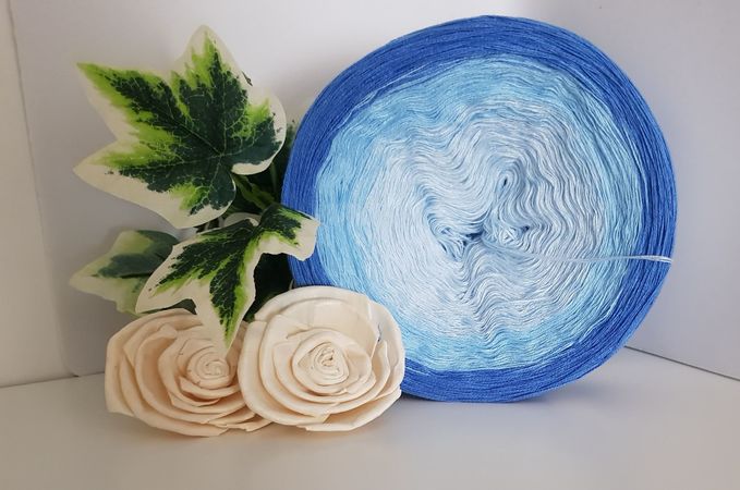 Material: 3 oder 4 fädiges Verlaufsgarn, ca.1200 – 1800 Meter, (je nach gewünschter Grösse) ca. 10 Meter