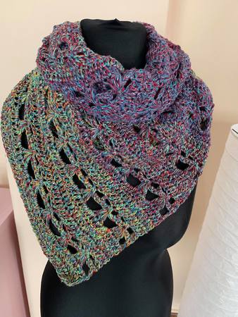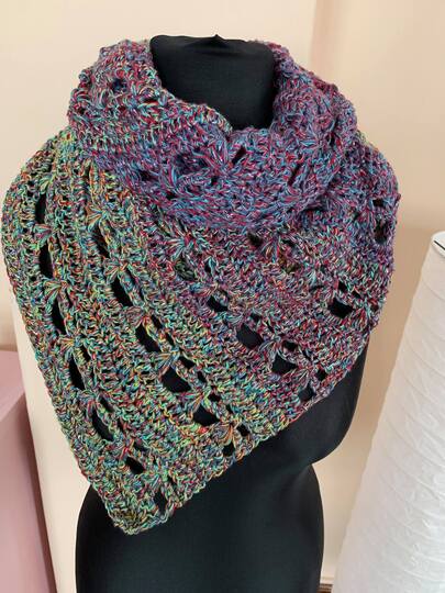 Die Größe des Endproduktes variiert je nach verwendetem Garn und Nadelstärke.