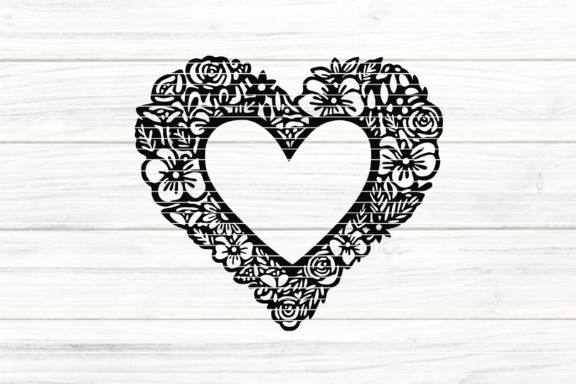 Eine vielseitig verwendbare Plotterdatei mit einem Herz Rahmen und Blumen