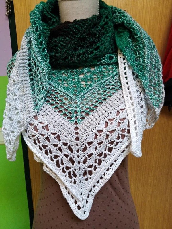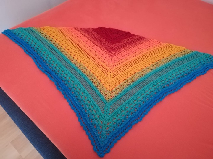 Das Tuch wurde bei mir ca 180x 82 cm. Kann varieren je nachdem wie fest gehäkelt wird.