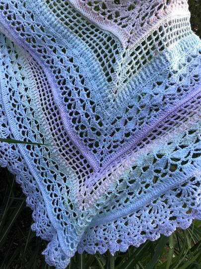 Die Nixe ist ein tolles Tuch mit einem abwelechsungsreichen Muster. Wurde erfolgreich mehrmals testgehäkelt. Nach fertigstellung, waschen und spannen notwendig.