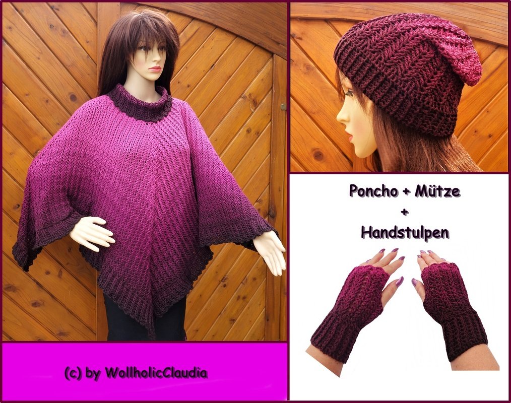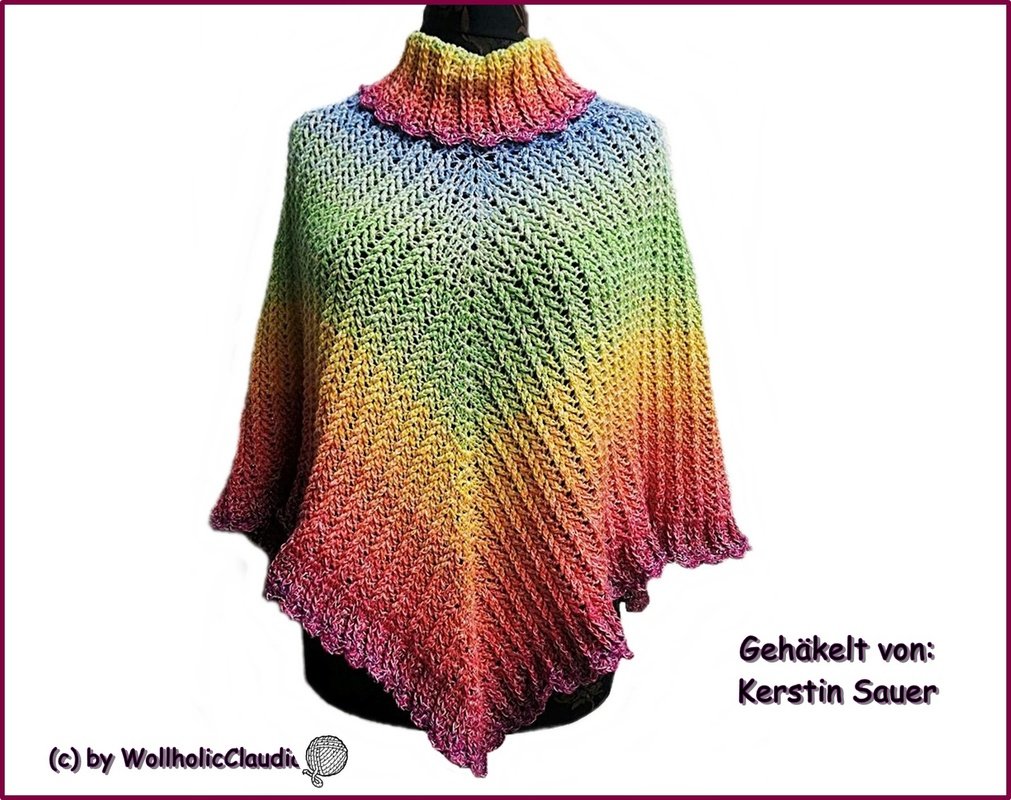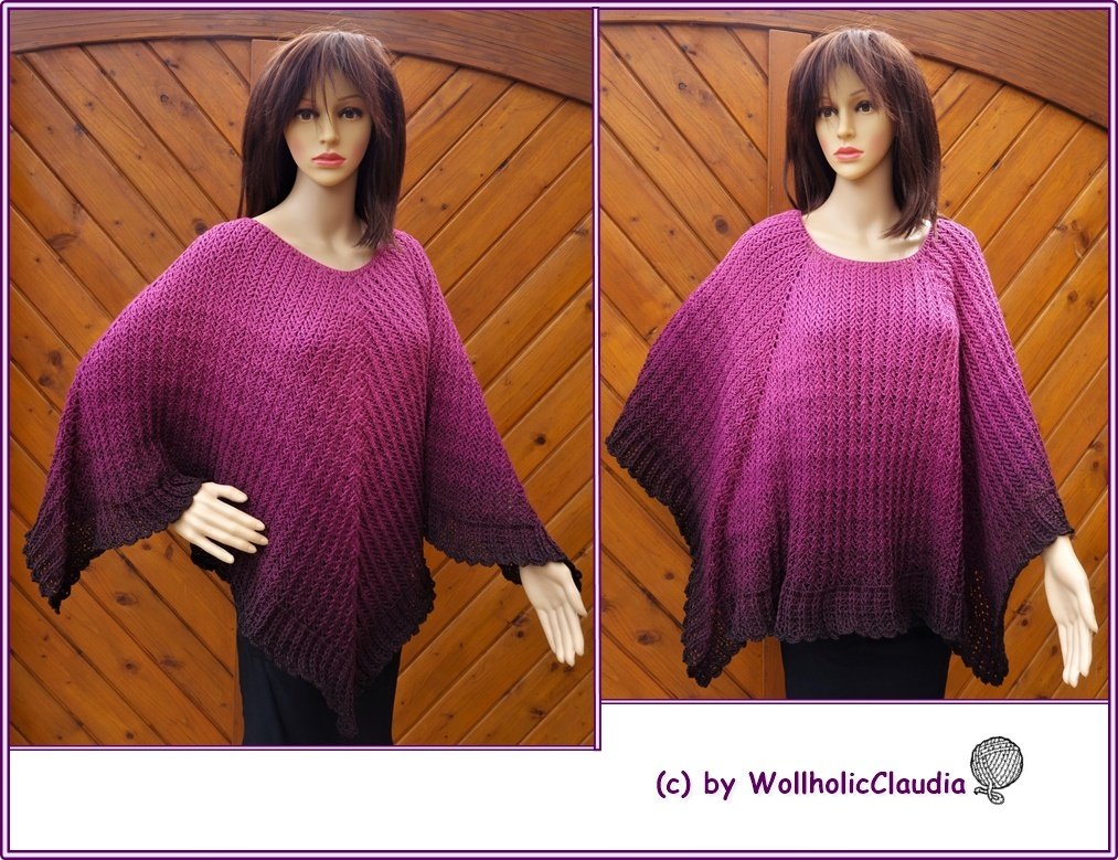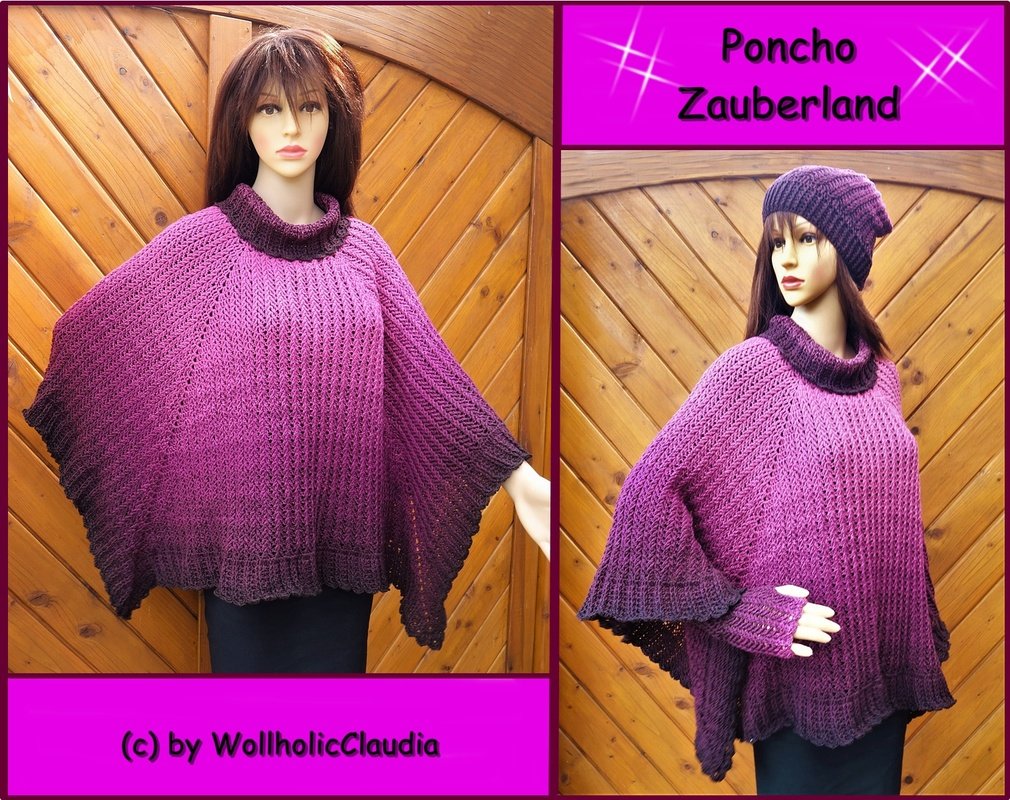 Bald beginnt wieder die Ponchozeit, Poncho Zauberland ist nicht nur kuschelig warm, sondern sieht mit den kleinen "Mini-Zöpfchen-Muster" modern und stylisch aus. Du kannst ihn in jeder beliebigen Größe mit kuschelig warmen Rollkragen anfertigen oder mit freien Halsausschnitt.