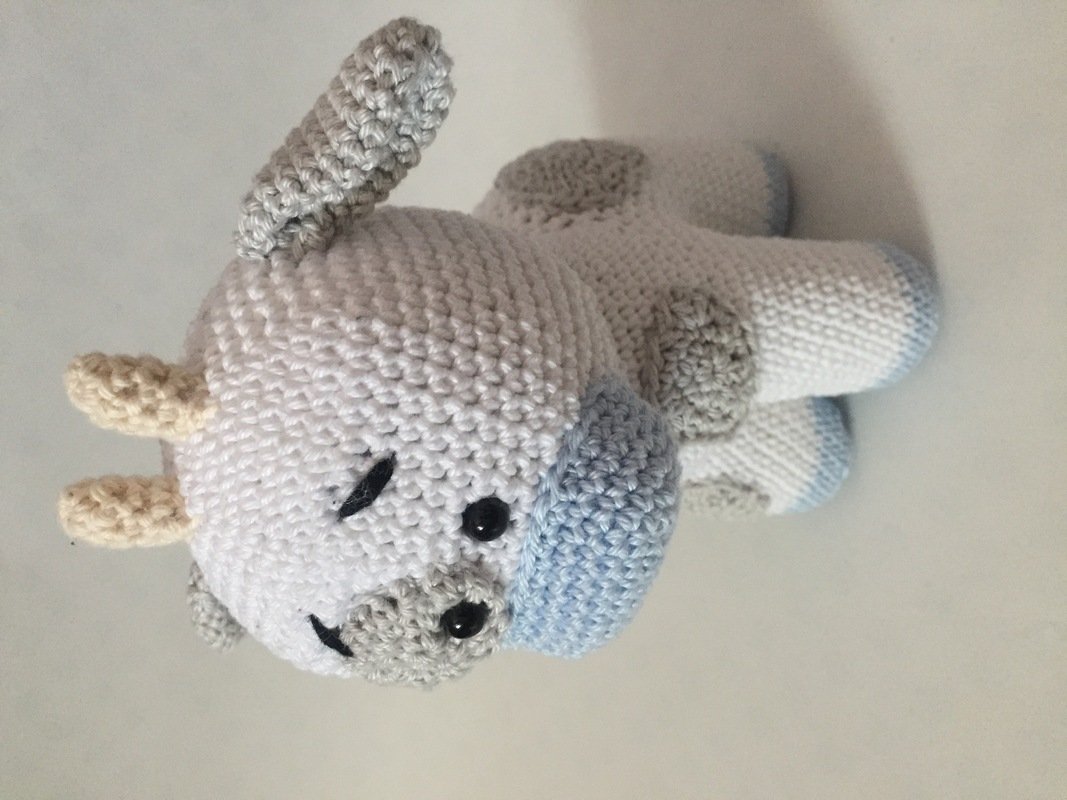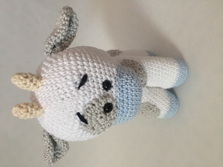 Häkelanleitung einer süssen Kuh mit einer ausführlichen Schritt für Schritt Anleitung und vielen Bildern