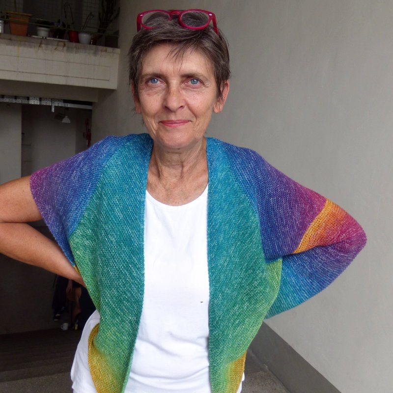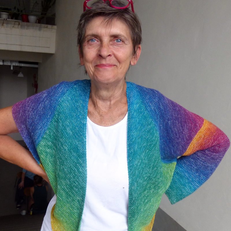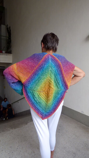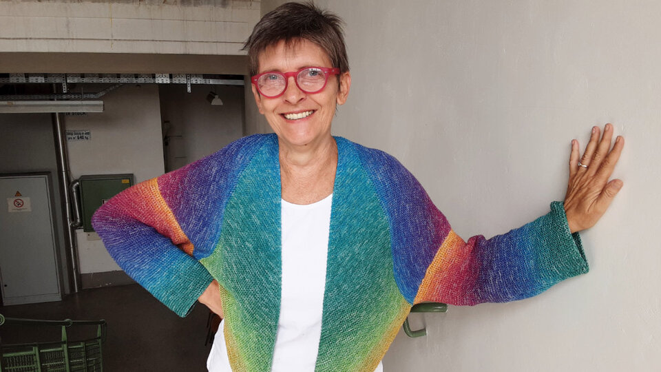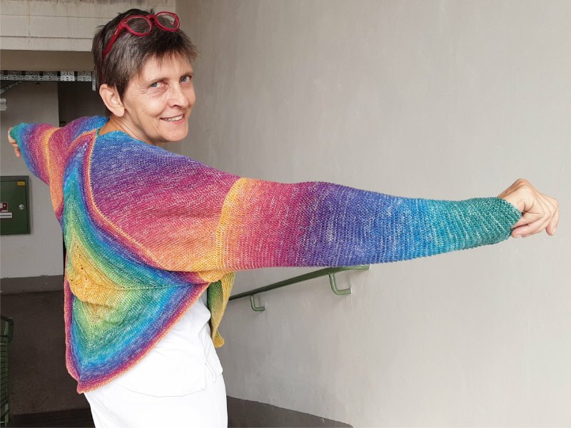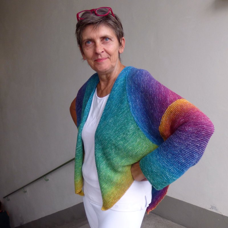 Diese Jacke wird sicher nicht nur mein Lieblingsstück. Kuschelweiche Baumwolle fällt figurschmeichelnd von den Schultern. Verlaufsgarne kommen hier natürlich besonders gut zur Geltung.