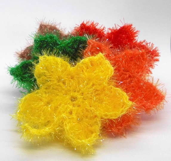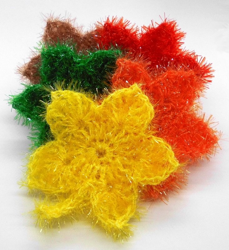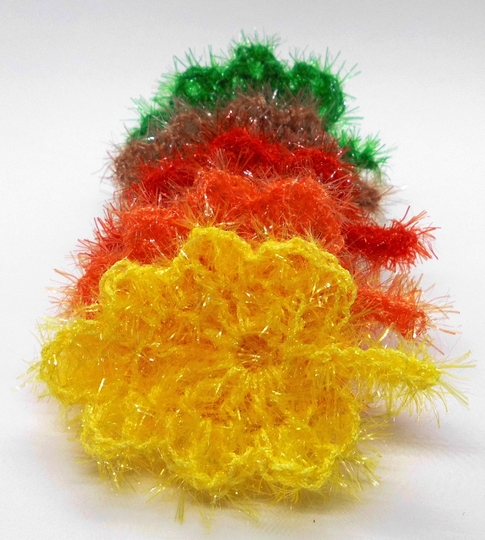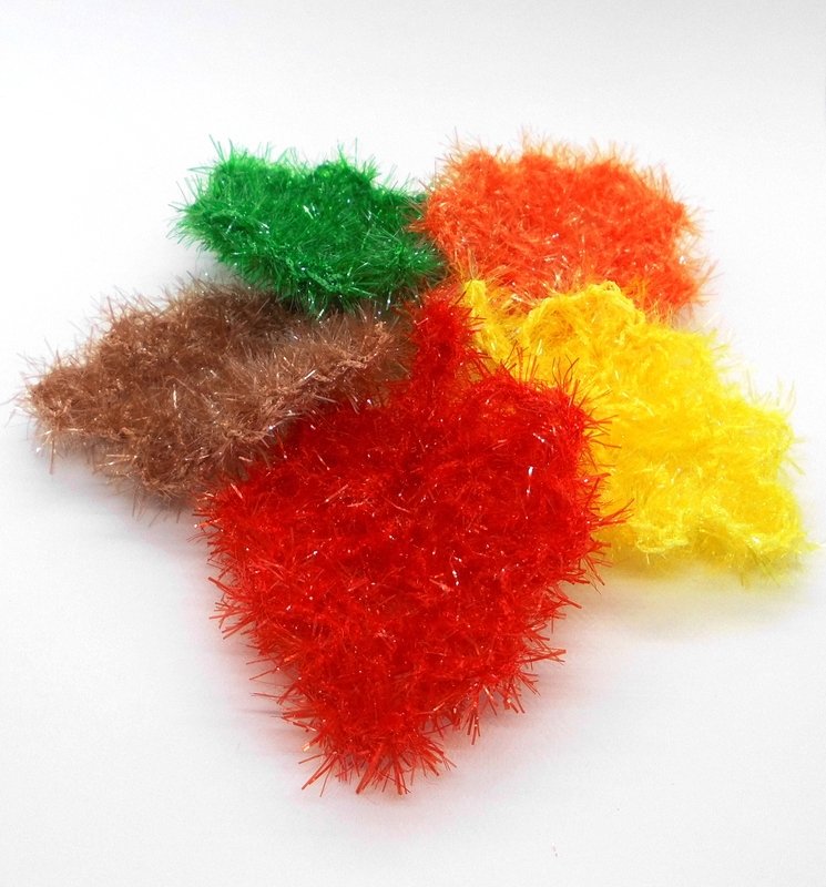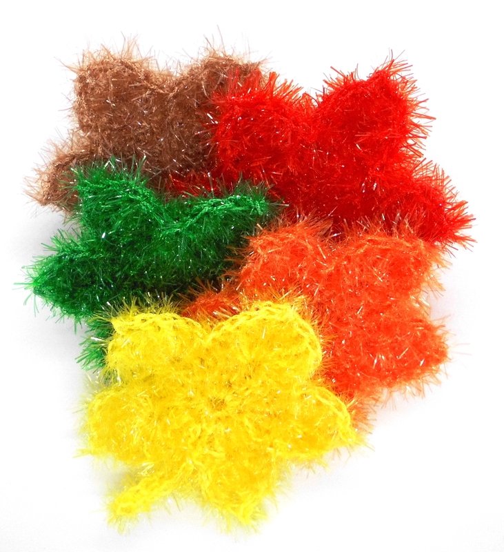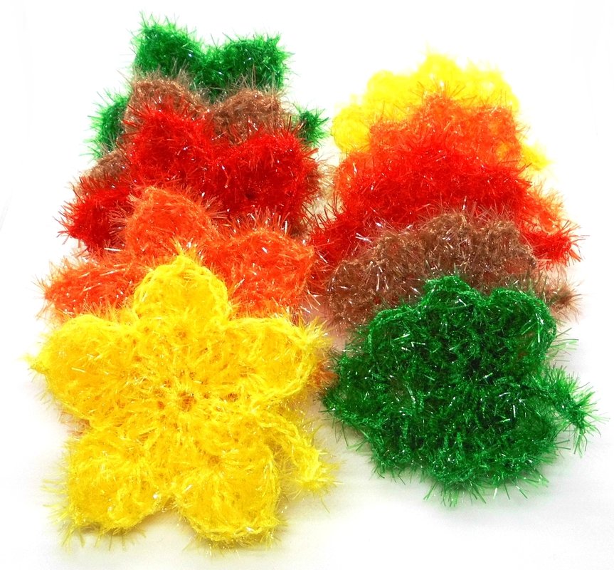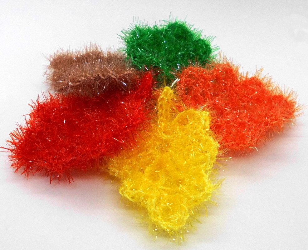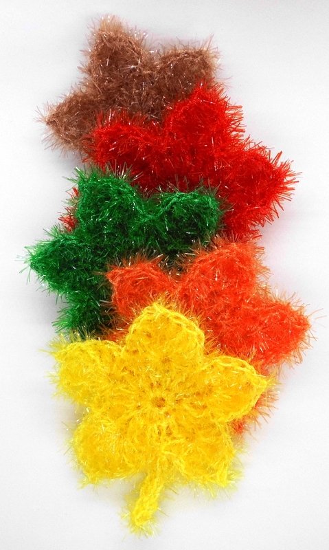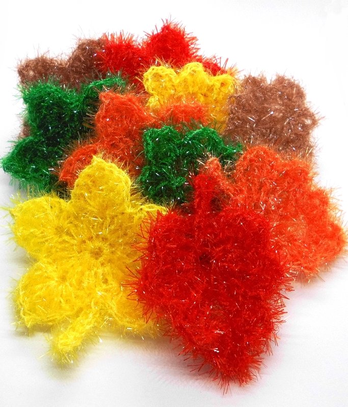 Aus Schwammgarn gehäkelt werden die Blätter ca. 6 x 8 cm und ca. 8 x 9 cm