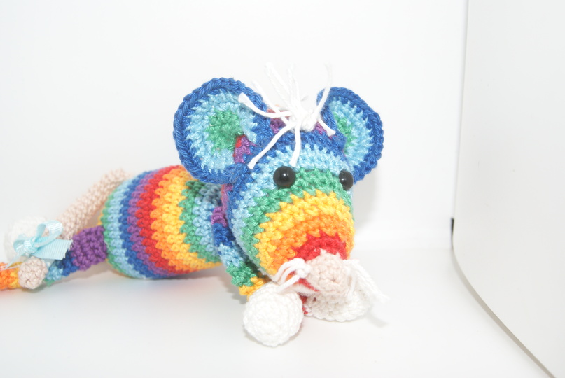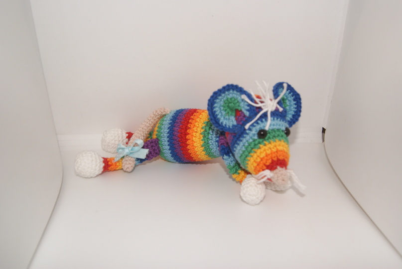 Die Ratte hat eine länge von ca 15 cm. Diese kann je nach Nadelstärke und Wollart abweichen.