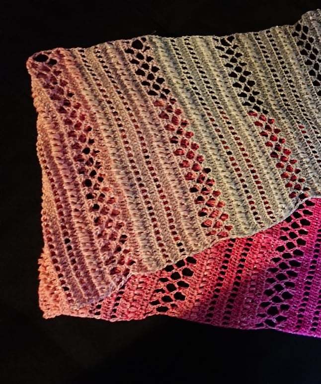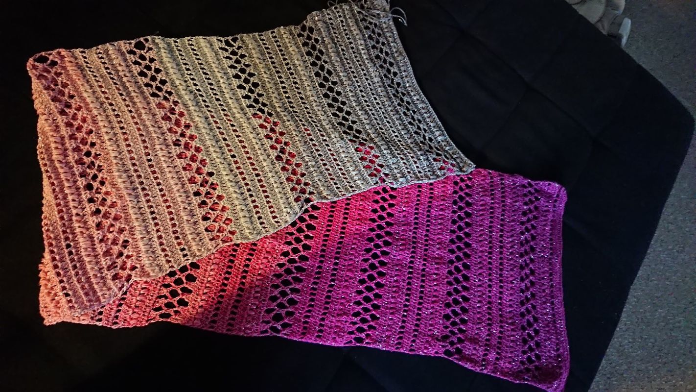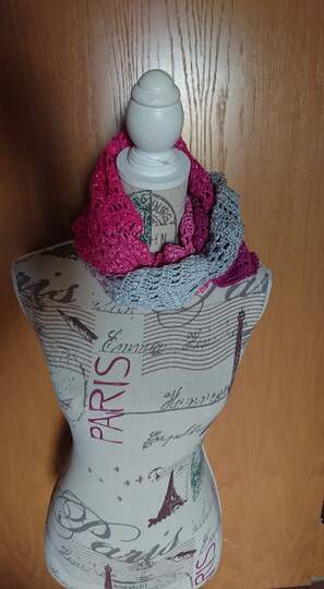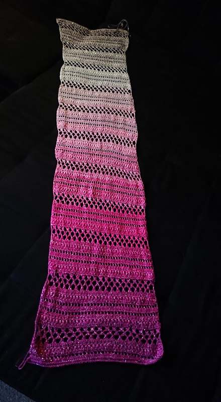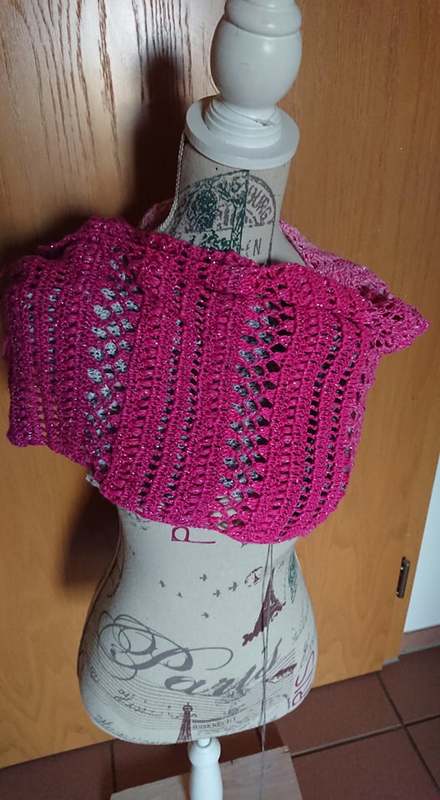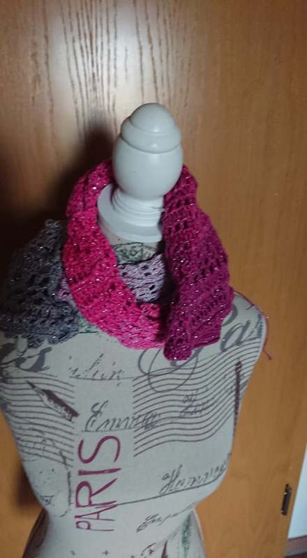 Meine Stole hat eine länge von ca 150cm und 35cm breite bei 750ll Wolle.