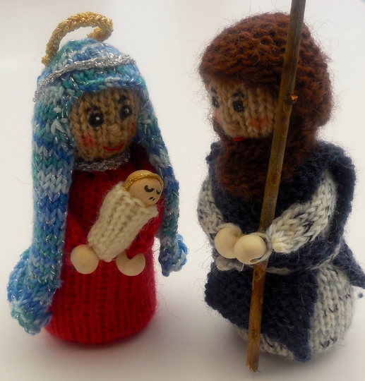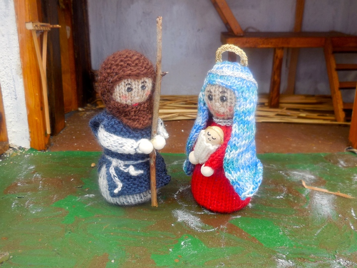 Auch Maria, Josef und das Jesuskind sind ausschließlich aus Wollresten gestrickt und passen zu meinen anderen Krippenfiguren.