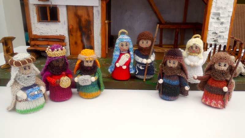 Mit einer Größe von 8 - 10 cm passen sie in nahezu alle vorhandenen Krippen. Es macht richtig Spaß die einzelnen Figuren zu stricken und zu gestalten.