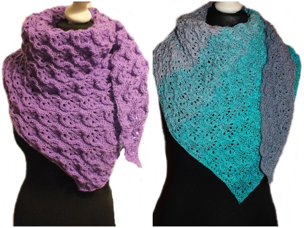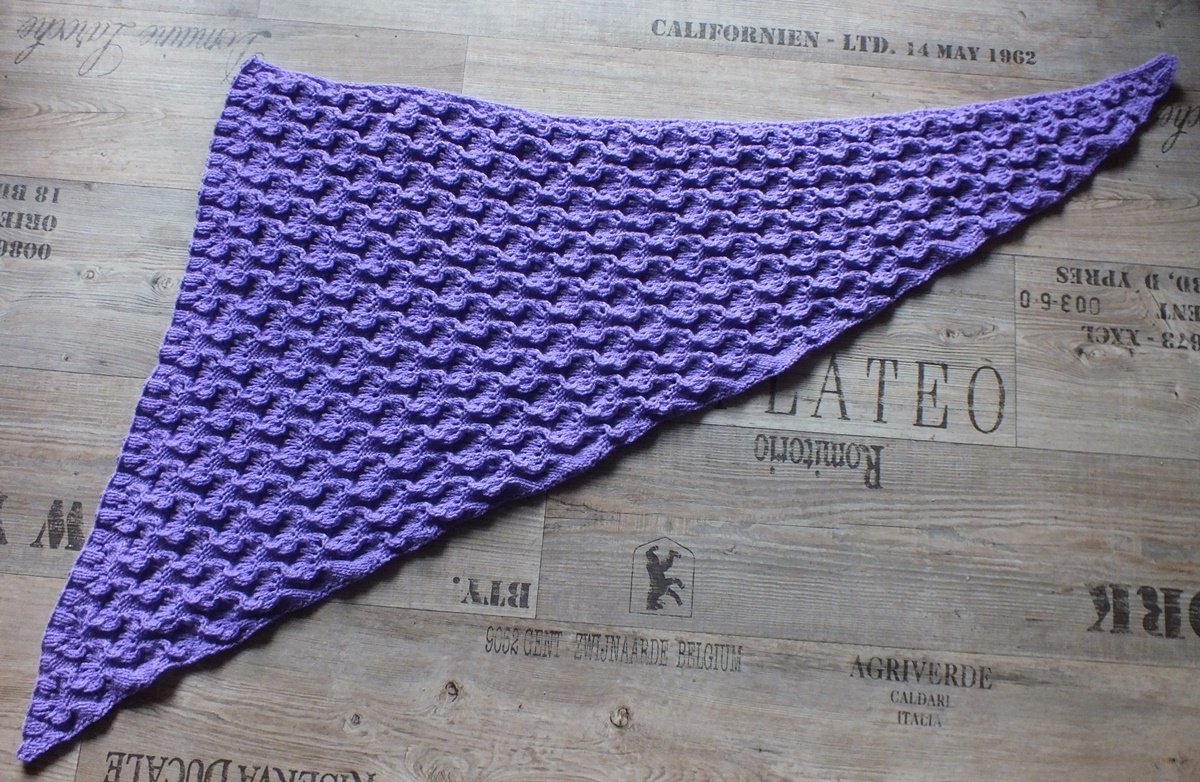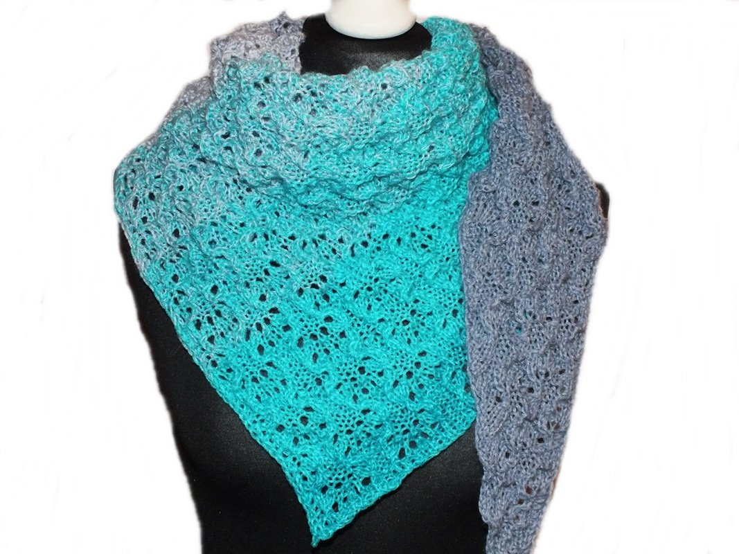 Strickanleitung für ein asymmetrisches Dreieckstuch mit einem tollen kombinierten Rechts-Links-Lochmuster, das einen wunderschönen reliefartigen Effekt zaubert.