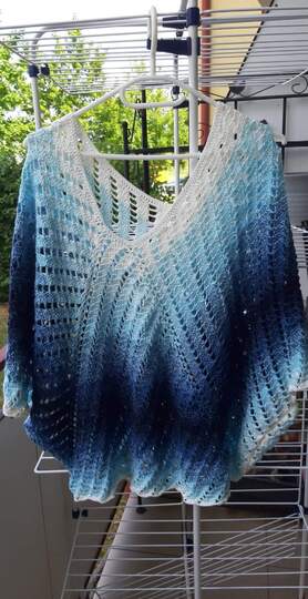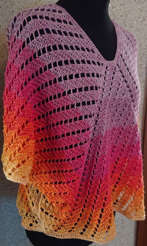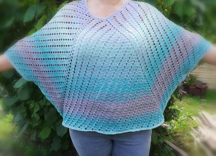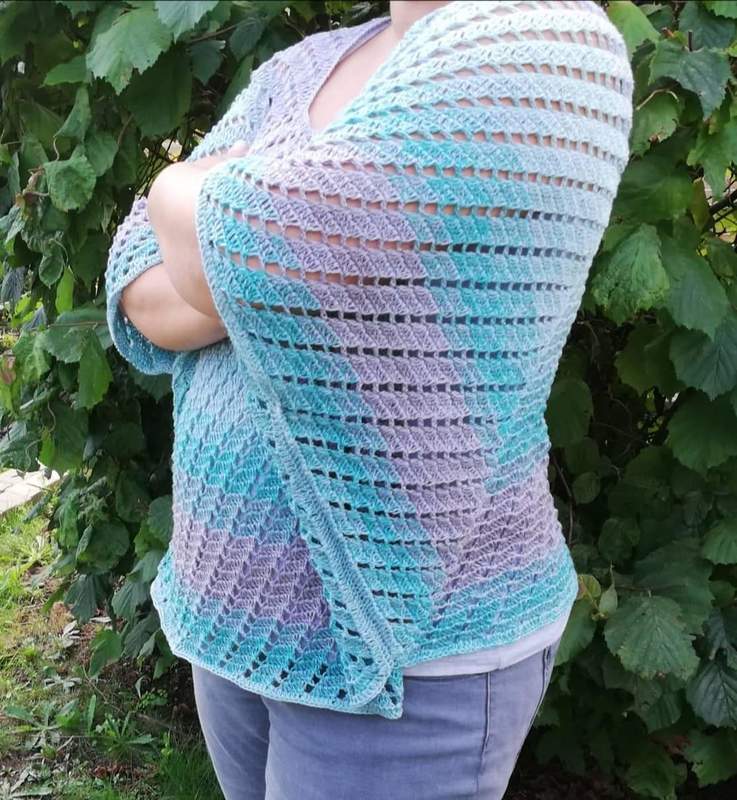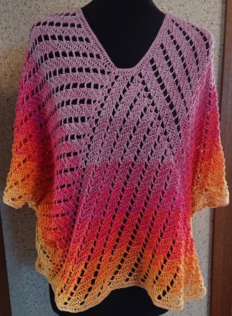 Für die Oversize-Tunika habe ich für Konfektionsgröße 36 1200m LL eines 3fädigen Farbverlaufgarns benötigt. Pro Konfektionsgröße größer oder kleiner benötigt ihr ca. 200m mehr oder weniger Garn.