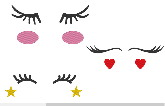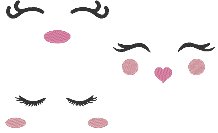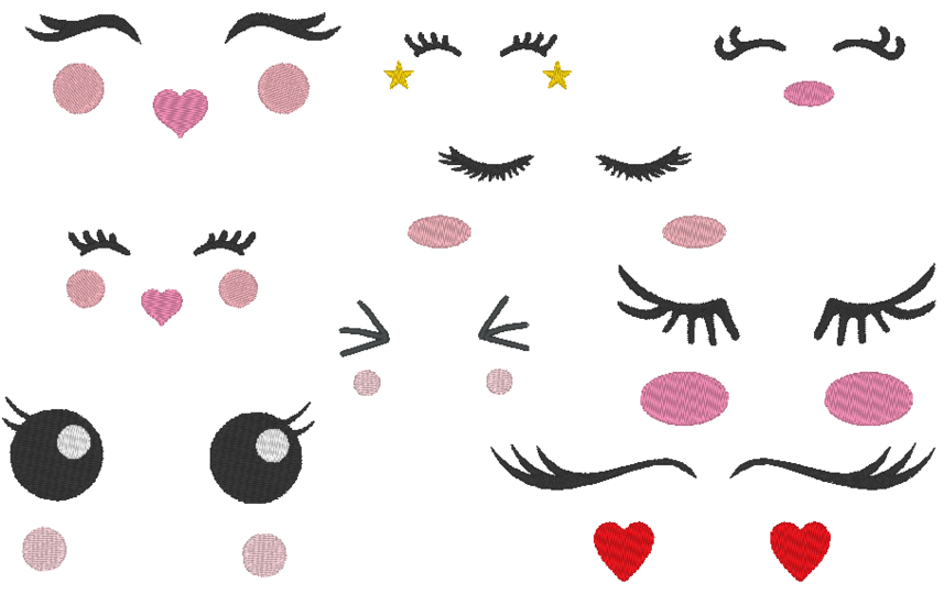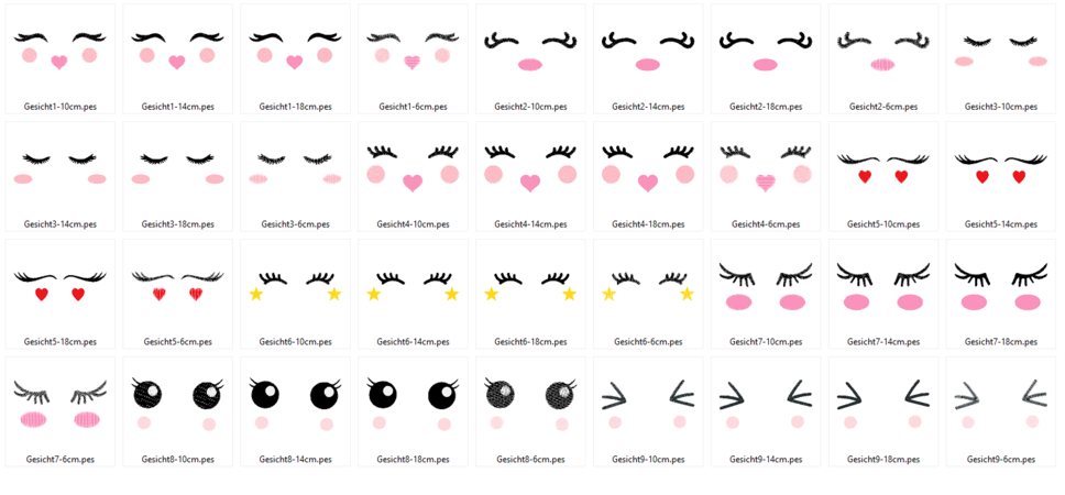 9 verschiedene Motive mit Gesichtern, zum besticken selbstgenähter Kuscheltiere.