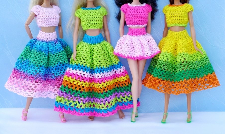 Kinder mögen es bunt, fröhlich und verspielt - auch bei der Mode für ihre kleinen Puppen. Den fröhlich-beschwingten Volant-Rock könnt Ihr in allen gewünschten Längen fertigen. Ihr könnt ihn einfarbig, zweifarbig, ganz bunt oder mit Farbverlaufsgarn häkeln. Jeder Rock wird so ganz individuell und einmalig sein. Er ist schnell angezogen und wird mit einem Druckknopf geschlossen.