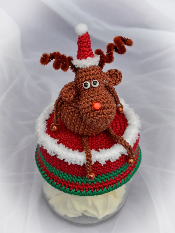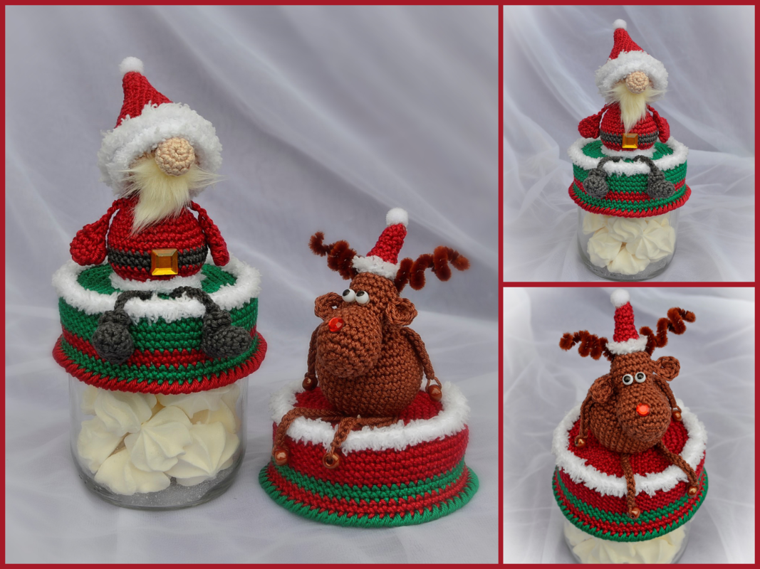 3tlg Sparset Häkelanleitungen für Marmeladenglasdeko oder Kantenhocker " Nikolaus, Elch und Deckelbezug"