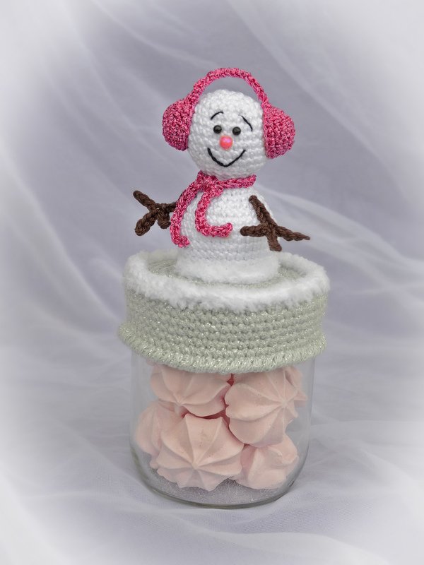 Häkelanleitung für Dekofigur oder Marmeladenglasdeko " Schneemann mit Ohrenschützern"