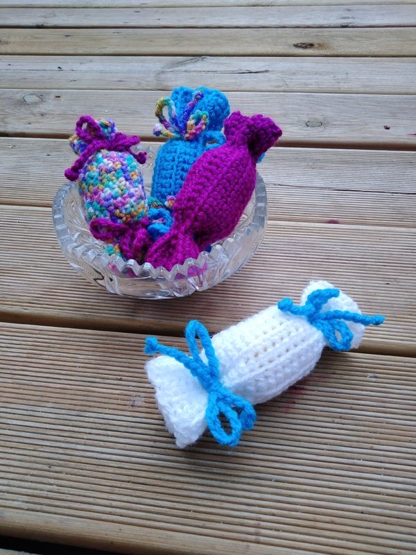 Wenn Sie etwas Kleines verschenken möchten, zum Beispiel ein Armband etc., Ihnen fehlt aber eine kleine Verpackung dafür, ist diese Häkelanleitung genau das Richtige für Sie. Sie ist schnell gehäkelt und Sie benötigen nur einen (oder wenn Sie es bunter mögen mehrere) kleinen Wollrest, < 10g, und das Plastikei aus einem Überraschungsei. So verpackt sieht ihr Geschenk aus wie ein Bonbon.